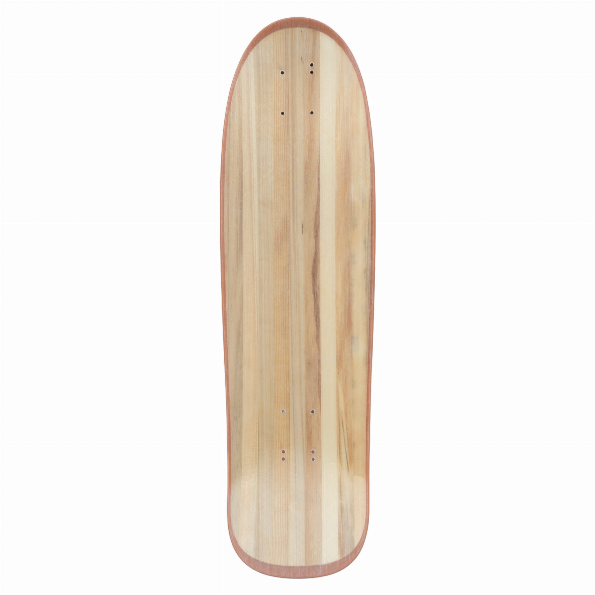 Deck został zbudowany w oparciu o wertykalnie laminowany rdzeń topolowo–jesionowy, wzmocniony włóknem szklanym triaxial i zamknięty 360° krawędziami z poliuretanu. Dzięki temu Quokka pozostaje bardzo lekka, a jednocześnie odporna na intensywne użytkowanie. Dodatkowo zastosowana powłoka antyzarysowaniowa w połączeniu z sidewallami pomaga dłużej zachować świetny wygląd decku i jego właściwości użytkowe.