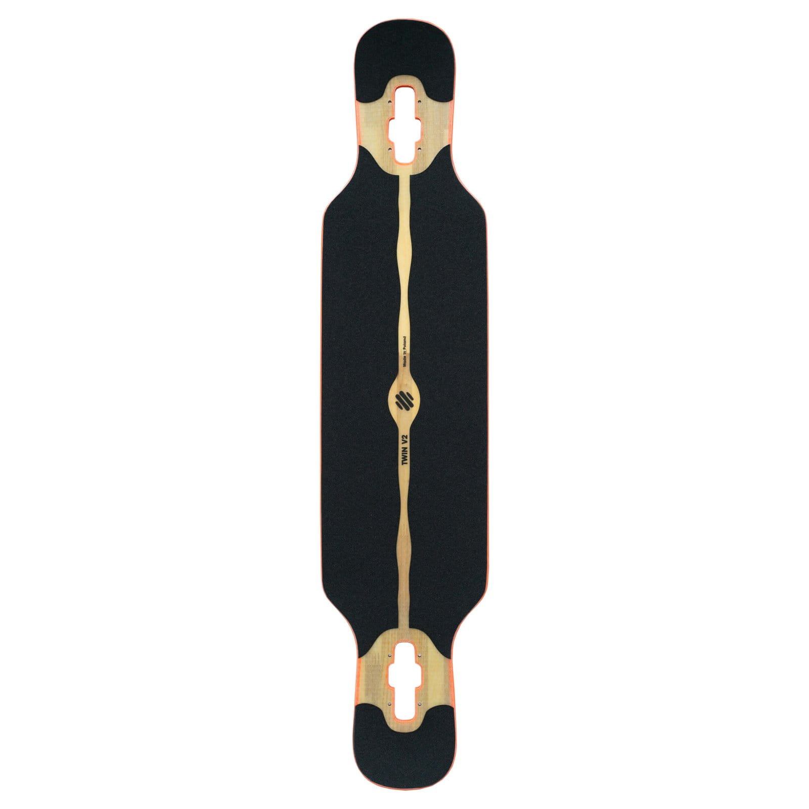W Twinie V2 zwiększyliśmy wytrzymałość i dopracowaliśmy kształt, aby deska jeszcze lepiej radziła sobie podczas intensywnego użytkowania. Zastosowaliśmy dodatkową warstwę poliuretanu oraz wzmocnienie z włókna szklanego wokół otworów na trucki, dzięki czemu deck lepiej znosi większe obciążenia, cięższych riderów i mocniejsze sesje. Jednocześnie Twin V2 wciąż pozostaje ultralekki – waży zaledwie 1.6 kg, co przekłada się na wygodniejsze użytkowanie i bardziej żywy feeling podczas jazdy.