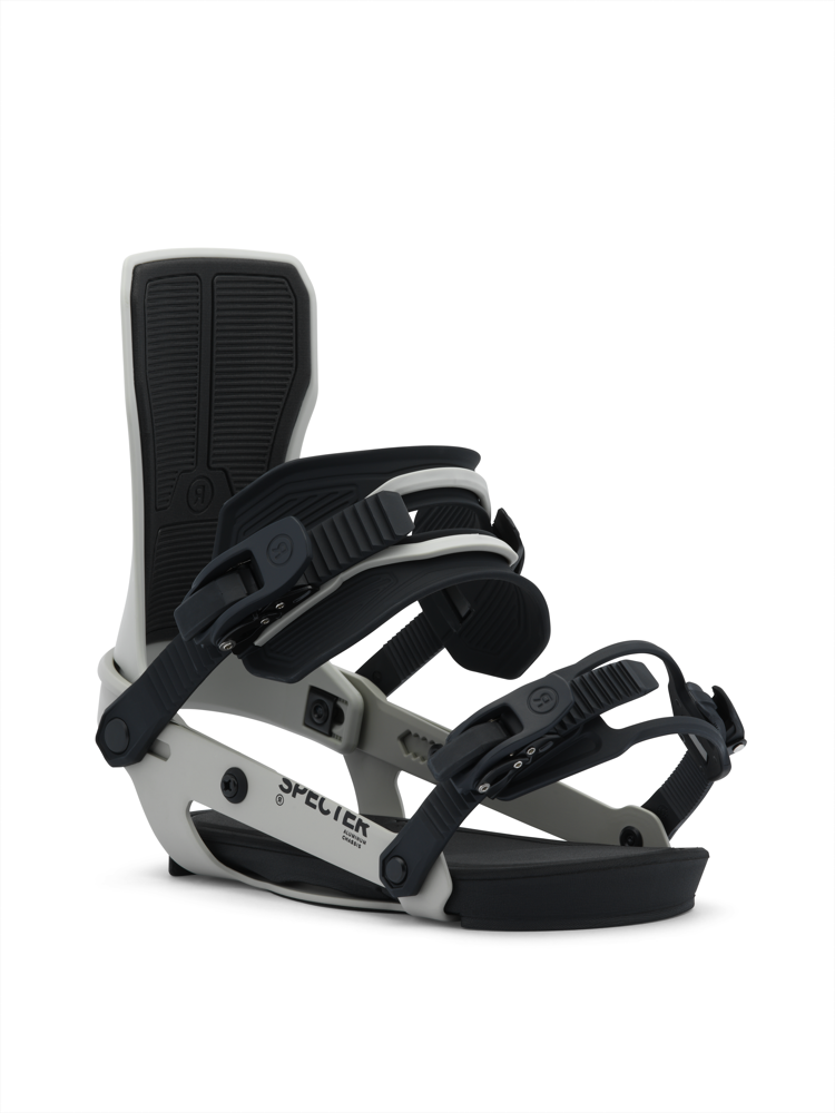 Ride Specter to męskie wiązania snowboardowe stworzone z myślą o lekkim, płynnym freestyle’u i naturalnym czuciu deski. Minimalistyczna konstrukcja usuwa zbędne elementy, zostawiając to, co najważniejsze: swobodę ruchu, elastyczność i komfort przez cały dzień.
