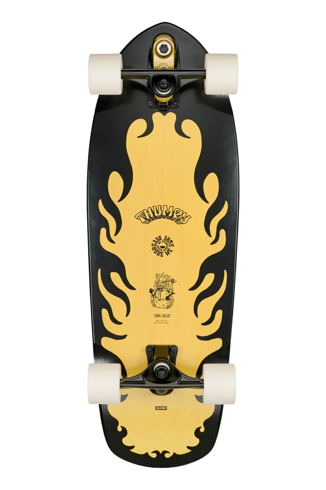 Globe Thumpy to szeroka, krótka deska typu surf skate, która łączy kompaktowe wymiary z możliwością dynamicznego carvingu. Dzięki truckom Slant Surf/Skate pozwala poczuć się na desce niemal jak na fali. To idealny wybór dla osób szukających zabawy i zwinności w miejskiej przestrzeni. Deck o długości 29.5" i wheelbase 16" zapewnia świetną kontrolę i szybką reakcję podczas skrętów.