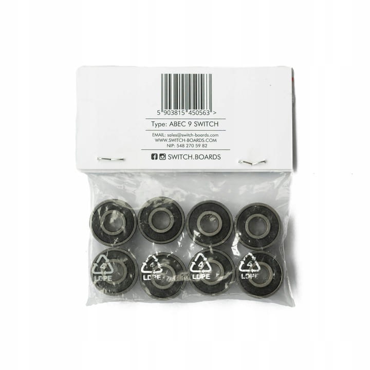 Łożyska kulowe ABEC 9 marki Switch wykonane zostały z wysokiej jakości stali, zapewniającej doskonałą wytrzymałość i osiągi. Standard ABEC określa między innymi mimośrodowość czyli okrągłość na torze w pierścieniu wewnętrznym. W tym wypadku maksymalny dopuszczalny mimośród ABEC 9: 0.0012mm. Łożysko dzięki wysokiej jakości wykonania jest jednym z najszybszych łożysk dostępnych na rynku.